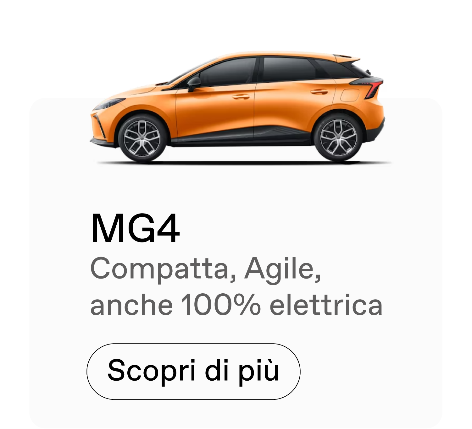 Esempio di finanziamento: MG ZS Classic 1.5 Comfort Prezzo di listino € 17.990,00. Prezzo promo € 15.590,00, anticipo € 6.580,00; importo totale del credito € 9.417,72, da restituire in 36 rate mensili ognuna di € 89,00, ed un VFG pari alla maxi rata finale di € 8.635,50, importo totale dovuto dal consumatore € 11.923,04. TAN 6,990 % (tasso fisso) - TAEG 9,670 % (tasso fisso). Spese comprese nel costo totale del credito: interessi € 1.933,78, di cui € 0,00 quali interessi di preammortamento, istruttoria € 399,00, incasso rata € 4,00 cad. a mezzo SDD, produzione e invio lettera conferma contratto € 1.00; comunicazione periodica annuale € 1,00 cad.; imposta sostitutiva (o imposta di bollo): € 24,54. Offerta valida presso i dealers aderenti, fino al 31/03/2025